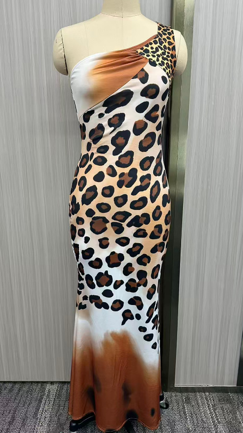 Product information: Color: Leopard Print Sleeve Style: Sleeveless Main Fabric Composition: Polyester Waist Style: Elastic Waist Sizes: XS, S, M, L, XL, XXL Style Type: Elegant Commuter Skirt Length: Long Skirt Sleeve Length: Sleeveless Skirt Category: Dress Trendy Element: Pattern Fit: Bodycon Style: Elegant Style