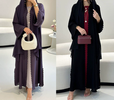 Stylish And Elegant Cardigan And Headscarf Two-piece Set