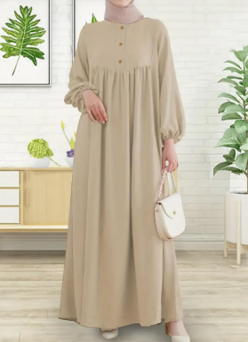Women's Long Robe, Loose Puff Sleeve, Solid Color Dress